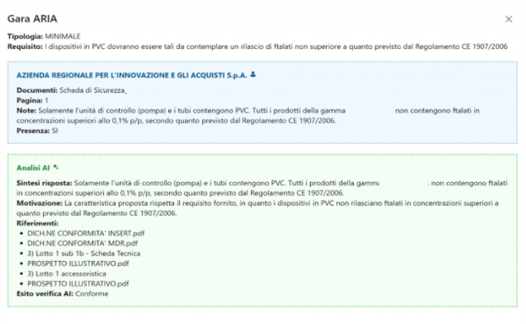 L’IA individua eventuali requisiti non soddisfatti, fornendo spiegazioni dettagliate basate sulle informazioni contenute nelle offerte e specificando, per ciascun requisito, il punto esatto dell’offerta tecnica in cui è presente il riferimento corrispondente.